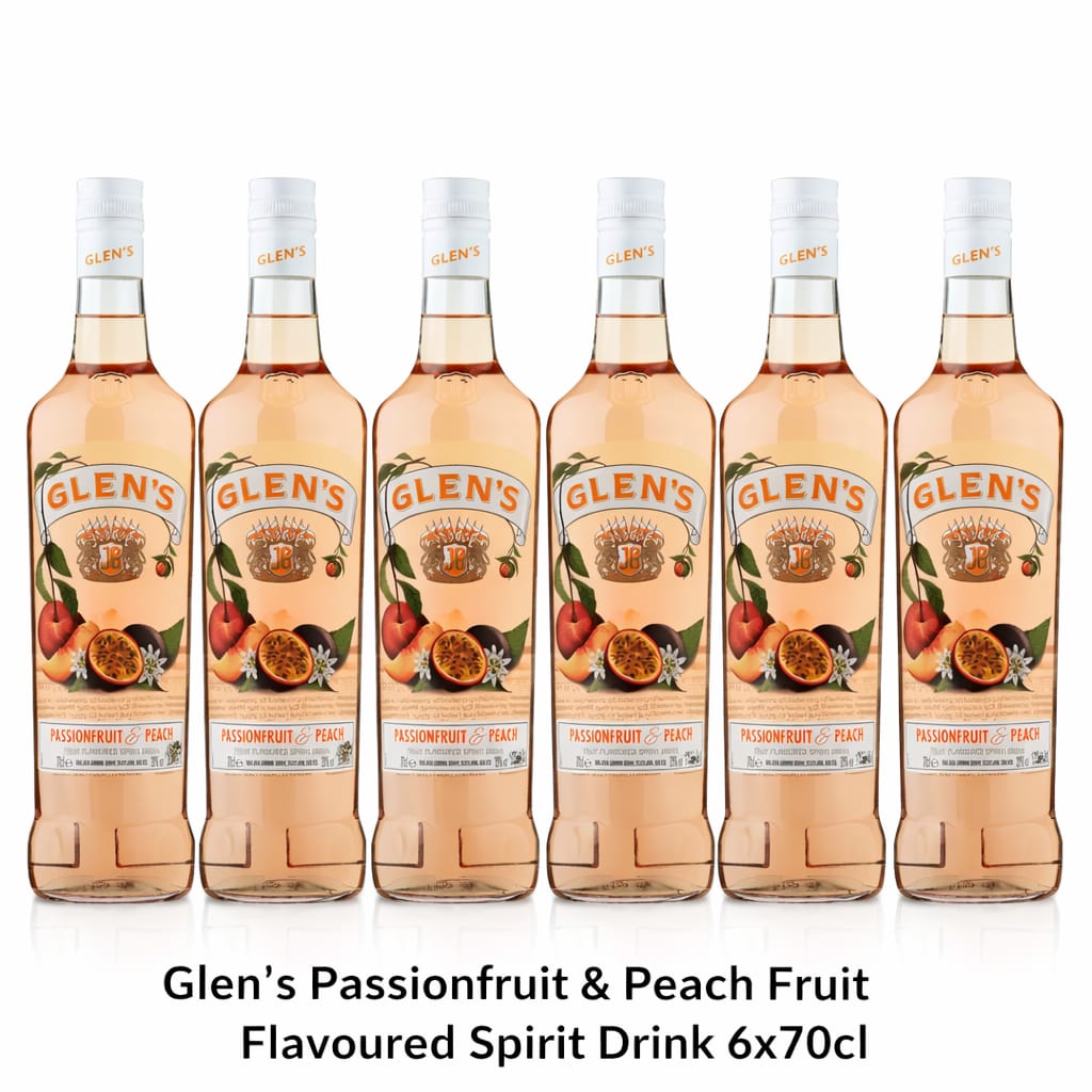 Glen’s Passionfruit & Peach Fruit Flavoured Spirit Drink 6x70cl | Refreshing Fruity Alcohol | saveandgo