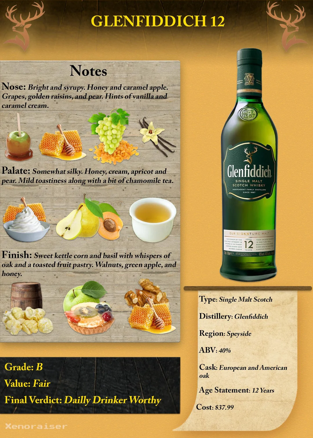 • Presentation: Classic Glenfiddich bottle