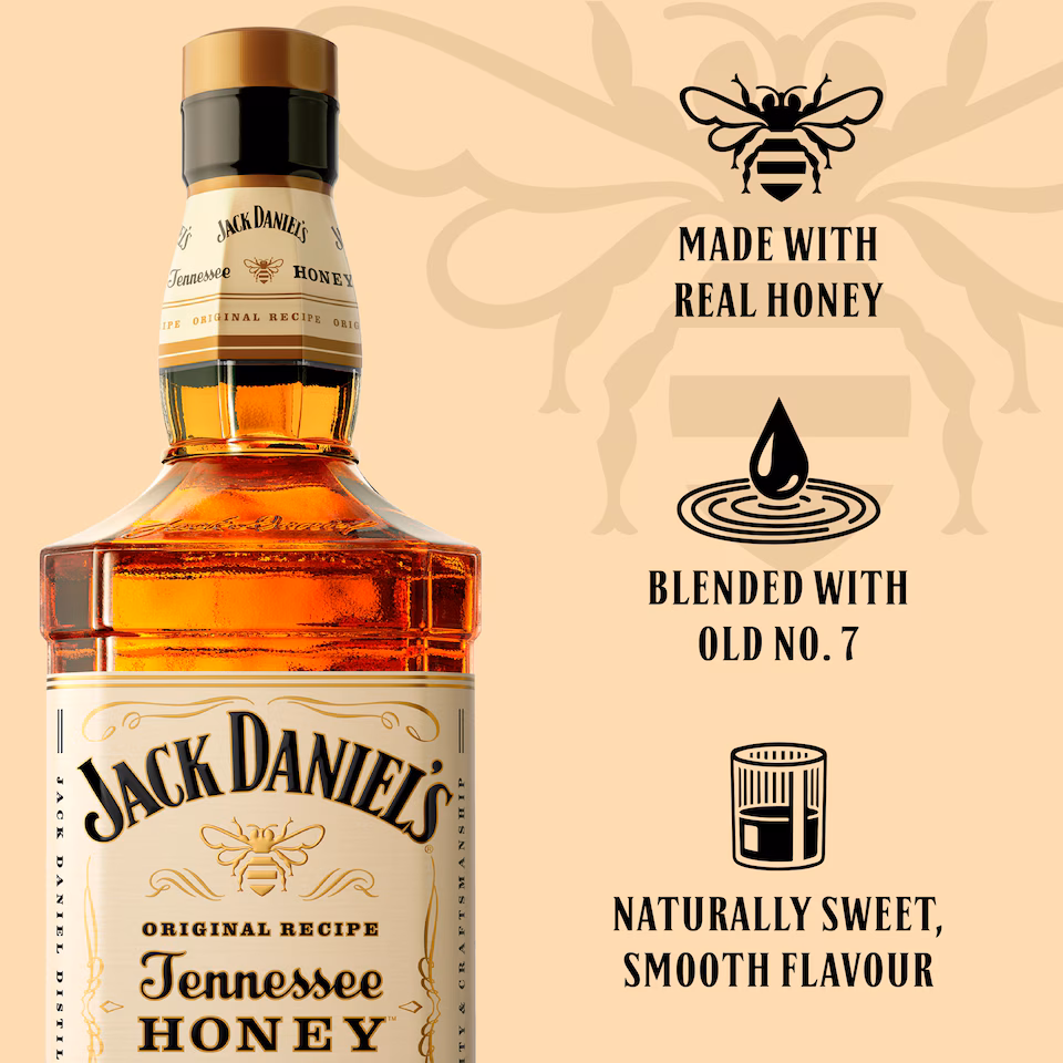 Blend of Jack Daniel’s Tennessee Whiskey and rich honey liqueur