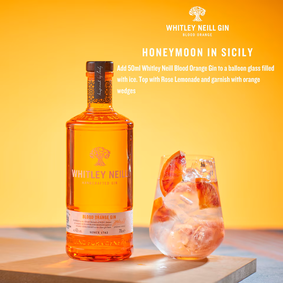 Whitley Neill Blood Orange Gin is a premium handcrafted gin inspired by the vibrant flavours of Sicily. Created by 8th-generation distiller Johnny Neill, this award-winning gin bursts with the sweet, zesty taste of Sicilian blood oranges, delivering a smooth and crisp Mediterranean finish. Distilled in England using a carefully selected blend of traditional botanicals, it is perfect for refreshing gin & tonics or flavour-forward cocktails.