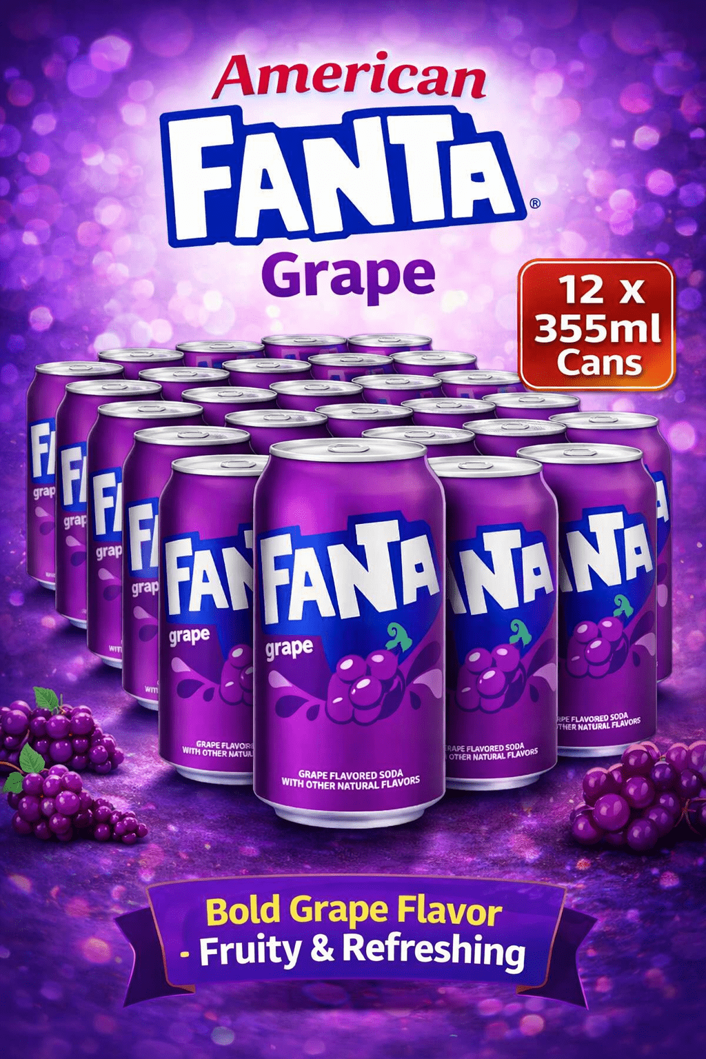 The world famous fruit-flavoured fizzy soft drink, available in a wide range of unique American flavours. Every single can is packed with the deliciously refreshing taste and exciting fizz that you come to expect from the Fanta brand! Light and Refreshing Grape flavoured Fanta.